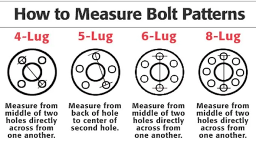 Your bolt pattern is determined by the number of lugs and the distance between specific studs, with different measuring methods depending on your lug count.